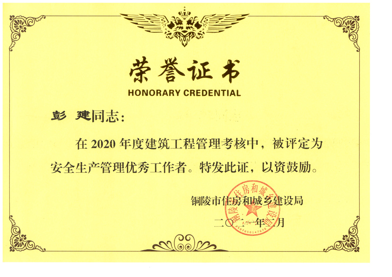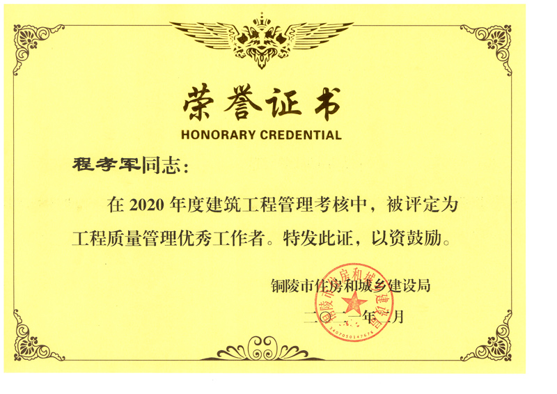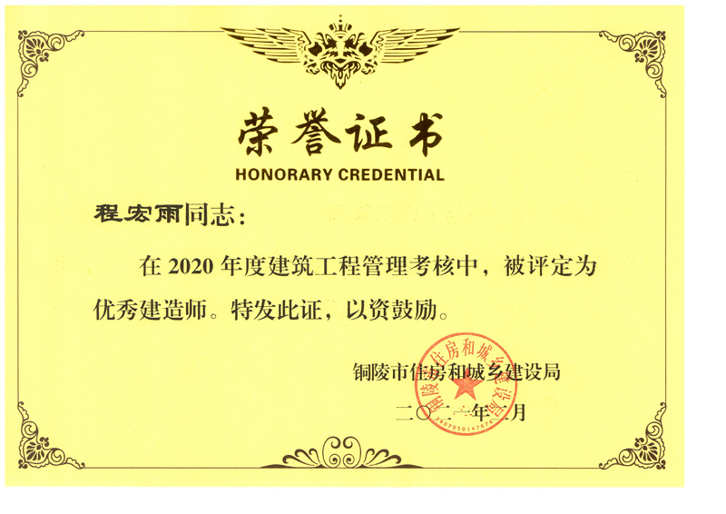 • 銅陵市2020年度優(yōu)秀建造師(程宏雨)